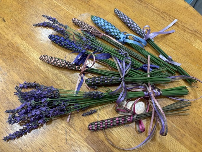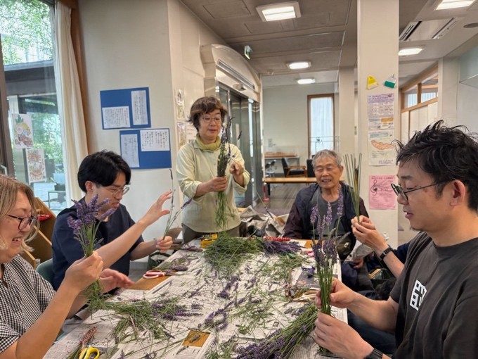 その後は場所を区民集会所に移し、ラベンダーバンドルズ作りを行いました。